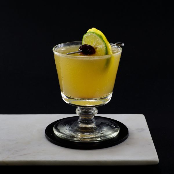 The Frisco is a smart riff on a simple and classic combination. There are various incarnations of this drink floating around, all of which are manipulations on the rye-Benedictine-lemon combination. You can thank Employees Only for the recipe printed here, which we think is the best. Lime adds something special, elevating it from a standard sour formula. Because the drink sticks to a conventional template, it allows the combination of lemon and lime to create interest. As a member of the sour family, it reminds us a bit of the Fog Cutter, which also employs the citrus duo to impressive effect. The hefty dose of citrus and Benedictine give it a subtle complexity that never feels complicated, and the cherry garnish adds just a touch of indulgence. On the nose it delivers a zesty lemon-lime combination with just a hint of spice from the rye. It has a balance and lip-smacking tart akin to the Sidecar. Herbaceous, medicinal Benedictine combines with rye for a satisfying blast of heat on the finish.